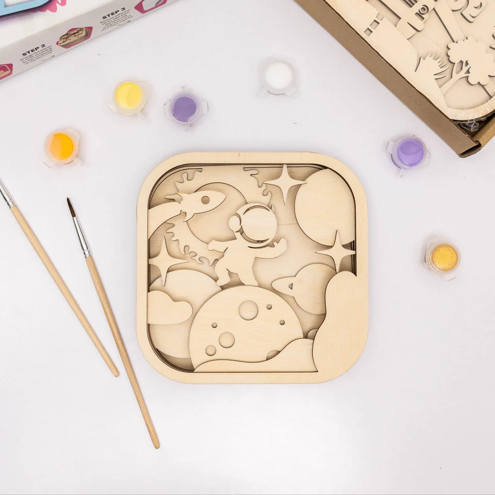 649.00 MDLВдохновляйте креативность и воображение с этим увлекательным практическим занятием! В комплект входят заранее вырезанные деревянные детали, краски и кисти для создания и украшения собственной космической работы.